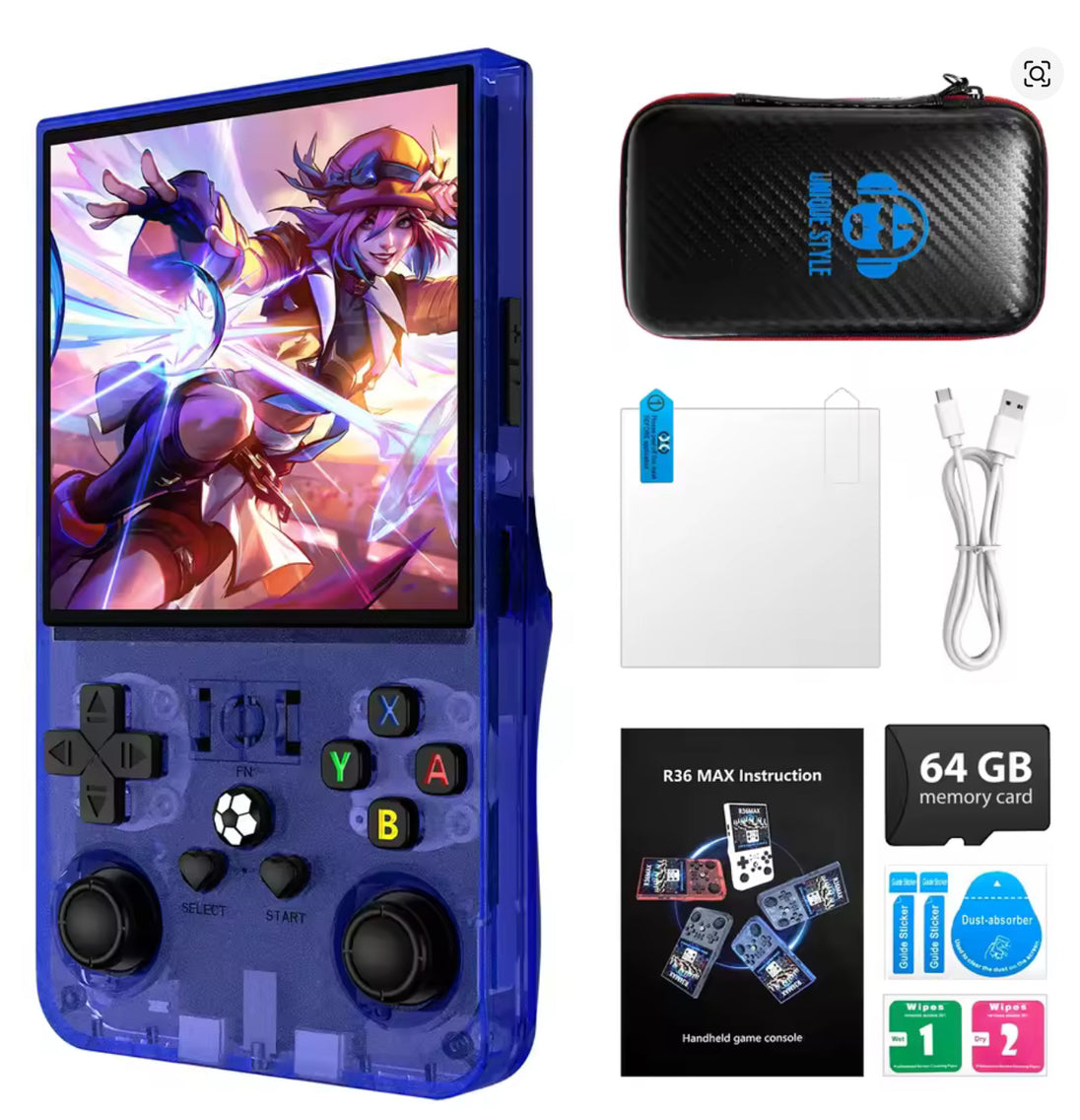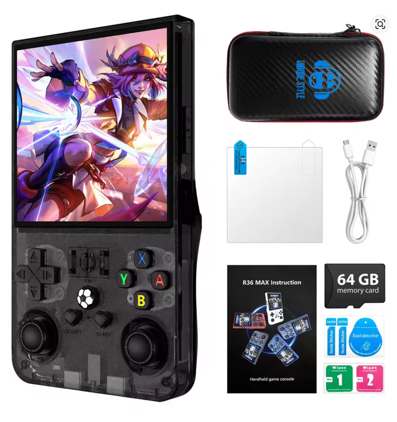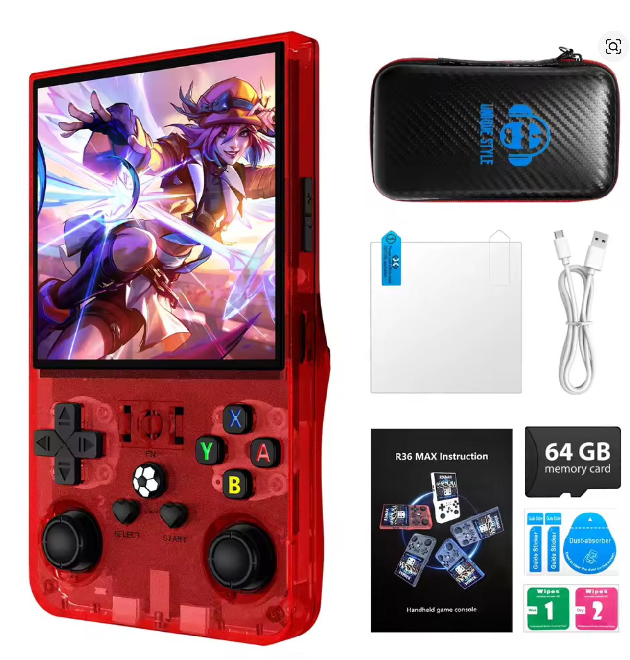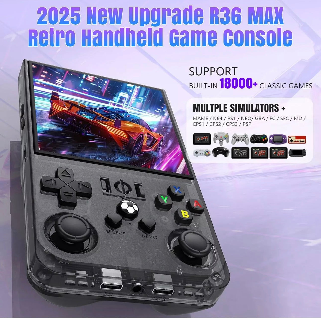 The R36 Max Retro Handheld Console lets you enjoy 18,000 classic games on the go. Designed for ease of use, its compact size and responsive controls support hours of comfortable gaming anywhere. Dive into nostalgic fun with a vast variety of titles, all from one handheld device that fits perfectly in your hands.